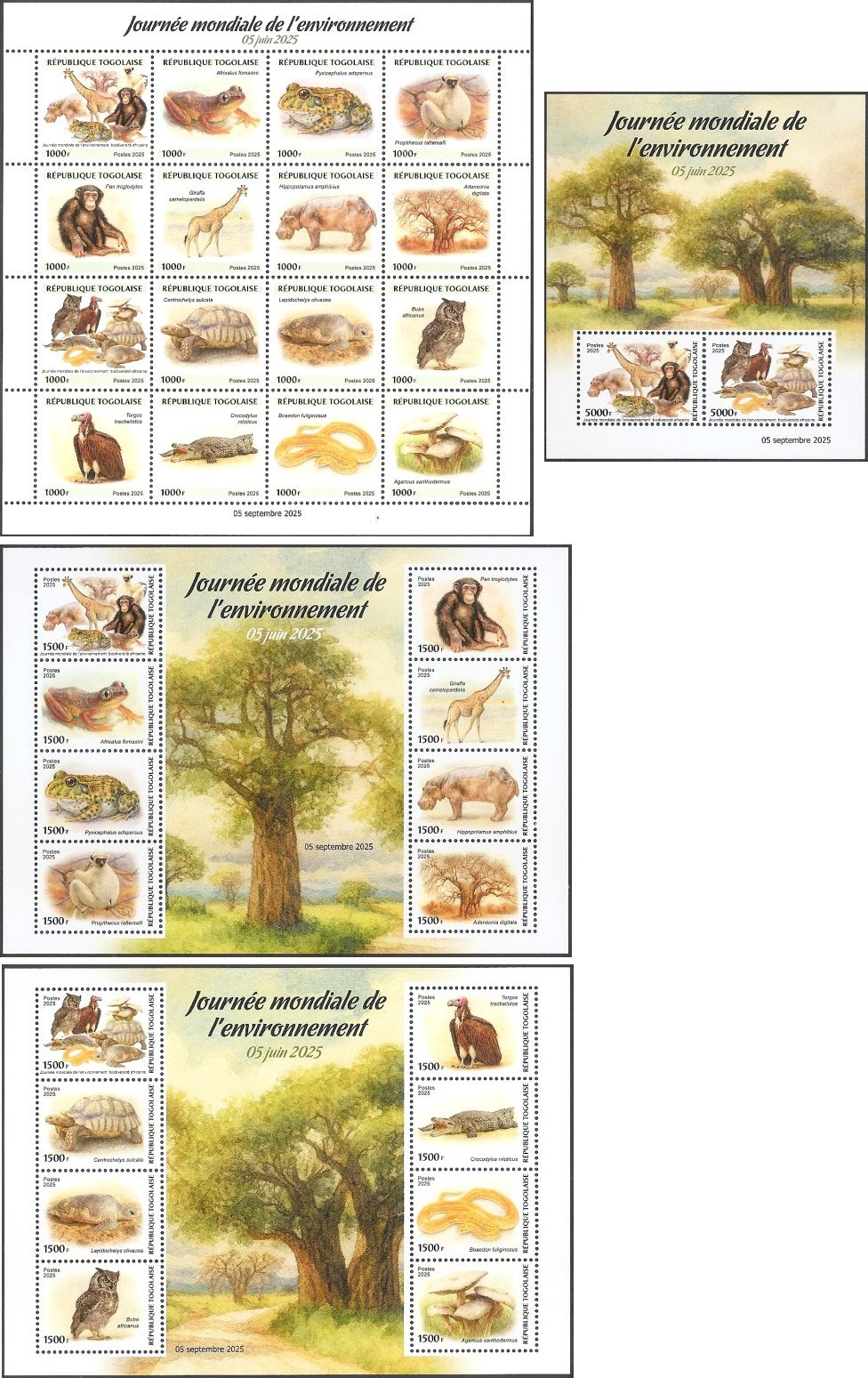 Le premier timbre représente un crapaud commun d'Afrique (Sclerophrys regularis). Il se trouve également sur le timbre du bloc avec une assemblée d'animaux.