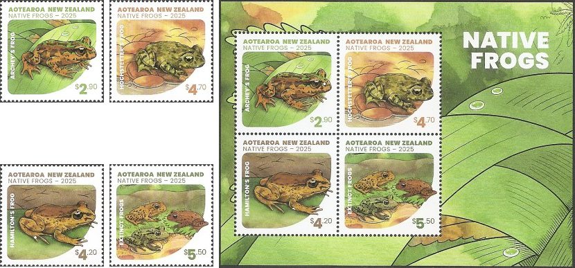 Cette série est dédiée au genre Leiopelma. Les espèces illustrées sont une grenouille d'Archey (Leiopelma archeyi, timbre à 2.90 dollars), Leiopelma hamiltoni (timbre à 4.20 dollars), un leiopelme de Hochstetter (Leiopelma hochstetteri, timbre à 4.70 dollars) et 3 espèces éteintes, à savoir Leiopelma markhami, Leiopelma auroraensis et Leiopelma waitomoensis (timbre à 5.50 dollars).