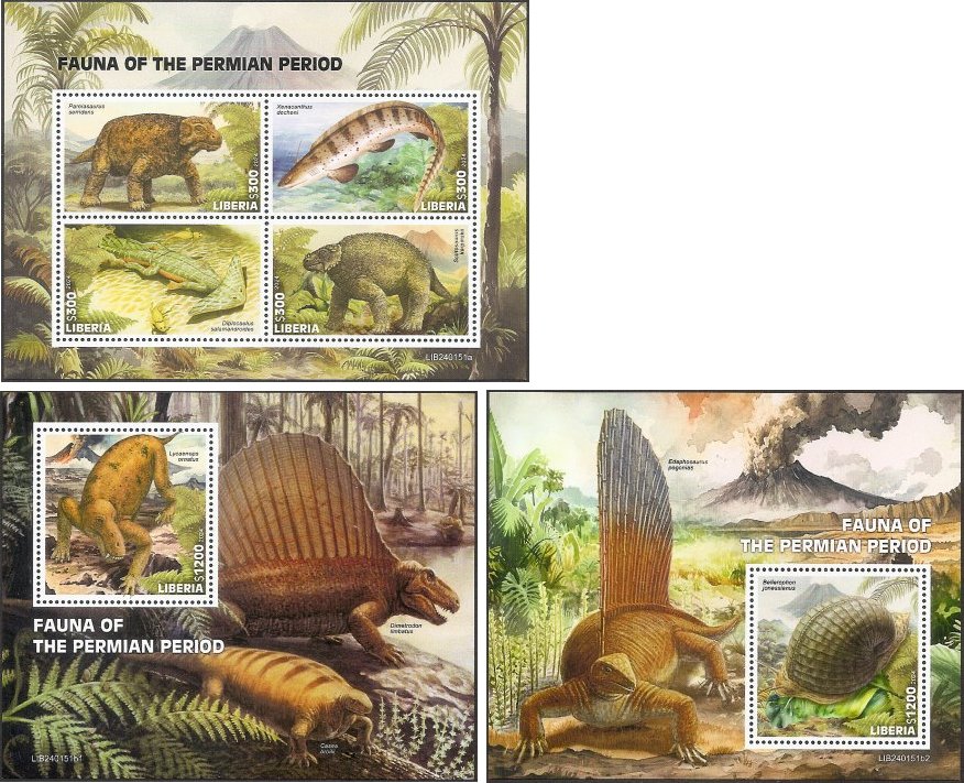 Le 3ème timbre représente Diplocaulus salamandroides.